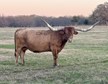 PCC Cactus Jack is the sire to this female. He was special from the day he was born and he has only excelled since then.He has won multiple honors including the highly competitive 2023 Legends Grand Champion Bull and the 2023 and 2024 TLBAA Horn Show Case Ultimate bull. He is docile with a great disposition.He was 86’’ TTT on his 3rd birthday but he enjoys rubbing his tips on the ground and other objects which has limited his TTT henceforth.That doesn’t change the genetics to his offspring which typically have have great TTT horn with very striking color— something which equates to value in this industry. ( Pace/Gilliland/Manning/Loomis)